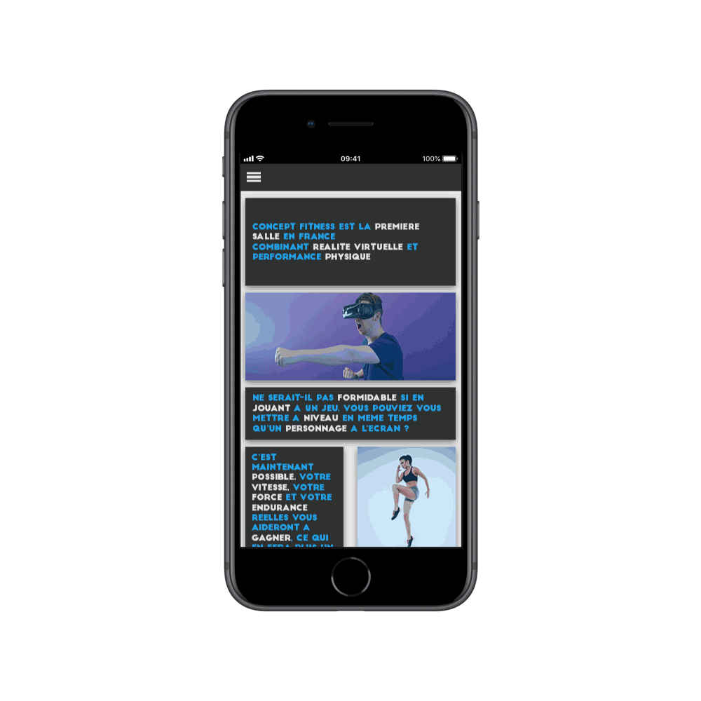 L’objectif a été de concevoir deux pages responsive. La première présente le concept de la salle et la seconde présente le planning des cours.